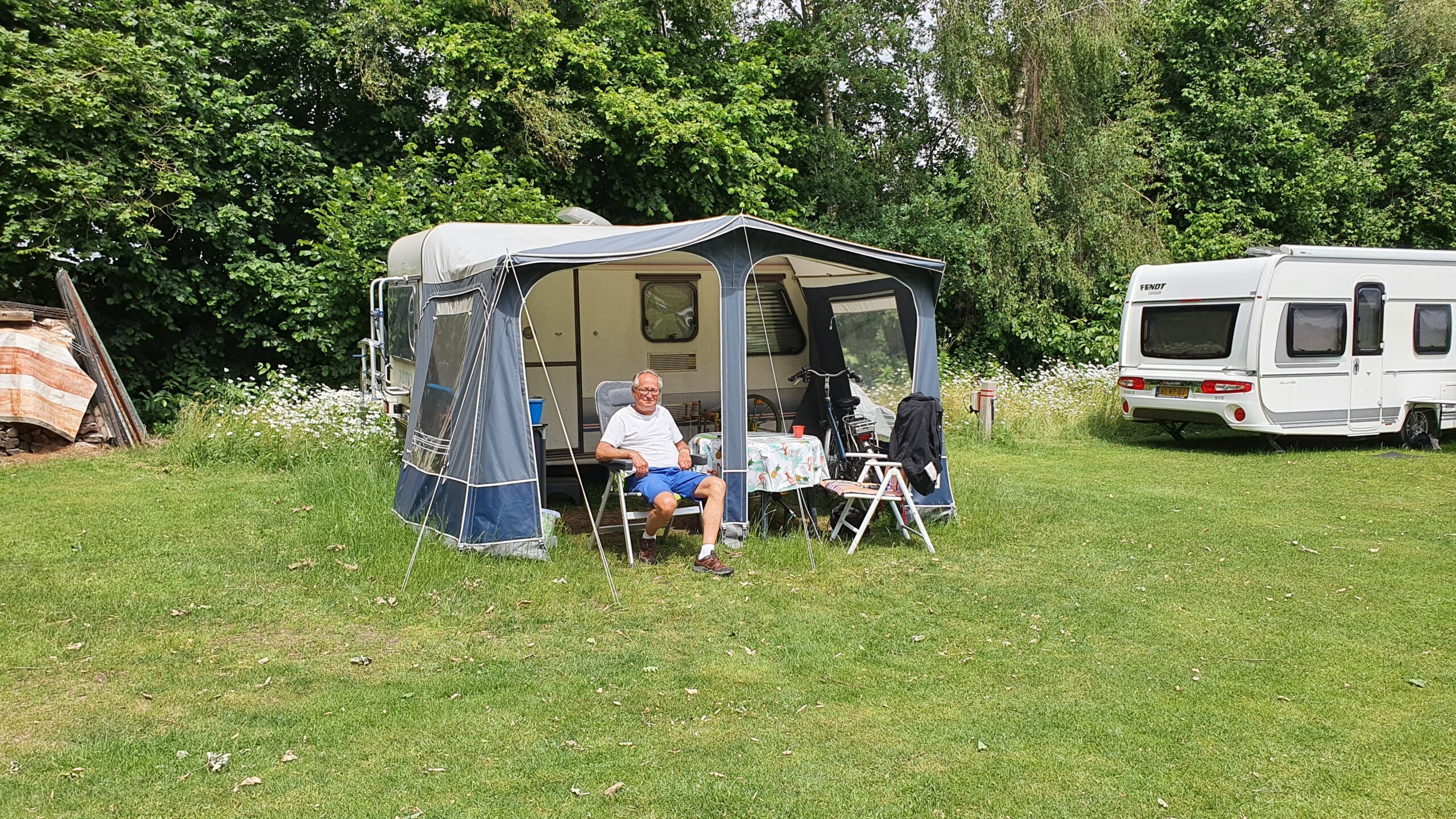 De camping is klein, enkel een grasveldje omringt door campers en caravans. Vanaf het picknicktafeltje in het midden, kijk je uit op het weiland. Niemand is aanwezig, iedereen is op stap. De andere gasten zijn, net als Ies, senioren. Ies is open over zijn geaardheid , maar enkel als het relevant is voor het gesprek.